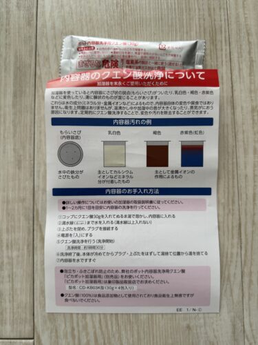 初めから、ポット内容器洗浄用のクエン酸が入っていたのでありがたいです。